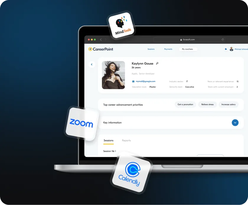 In just three months, we launched a Minimum Viable Product (MVP) that helped Career Point secure $1.4 million in funding for further development. The platform integrates tools like Zoom for video calls, Calendly for scheduling, and MindTools for learning resources, delivering a smooth and engaging user experience.